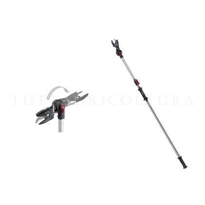 Svettatoio Helium con manico telescopico fino a 4mt, lama teflonata in acciaio, controlama in acciaio, corpo di taglio plastificato in fibra di carbonio e corda in kevlar.